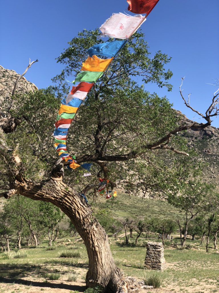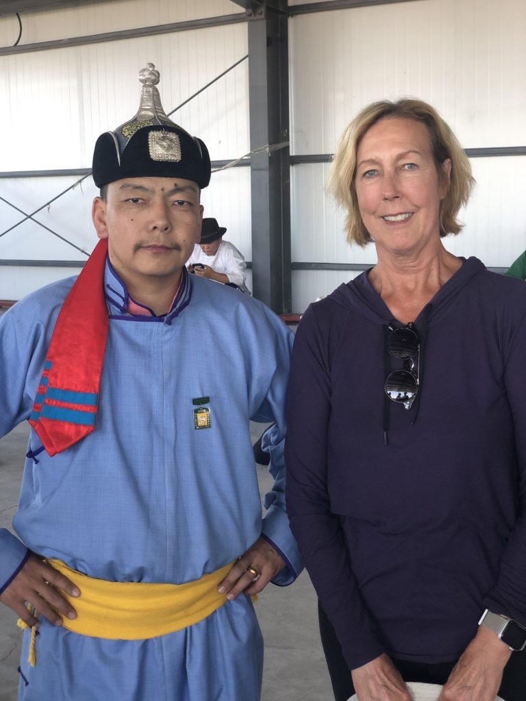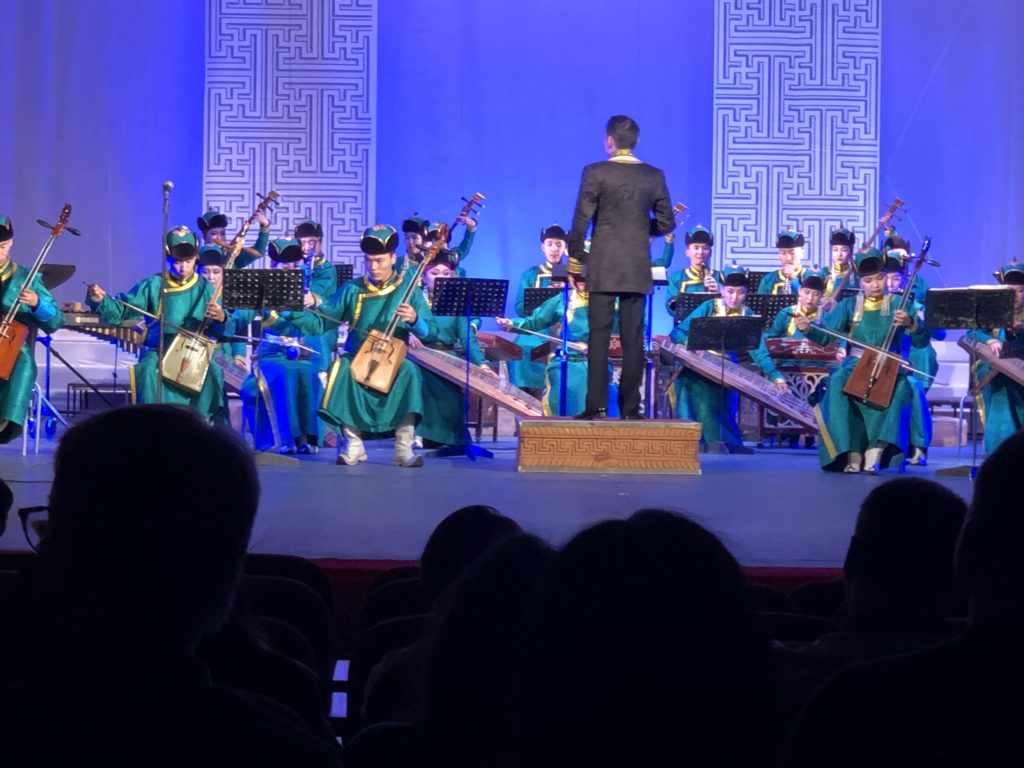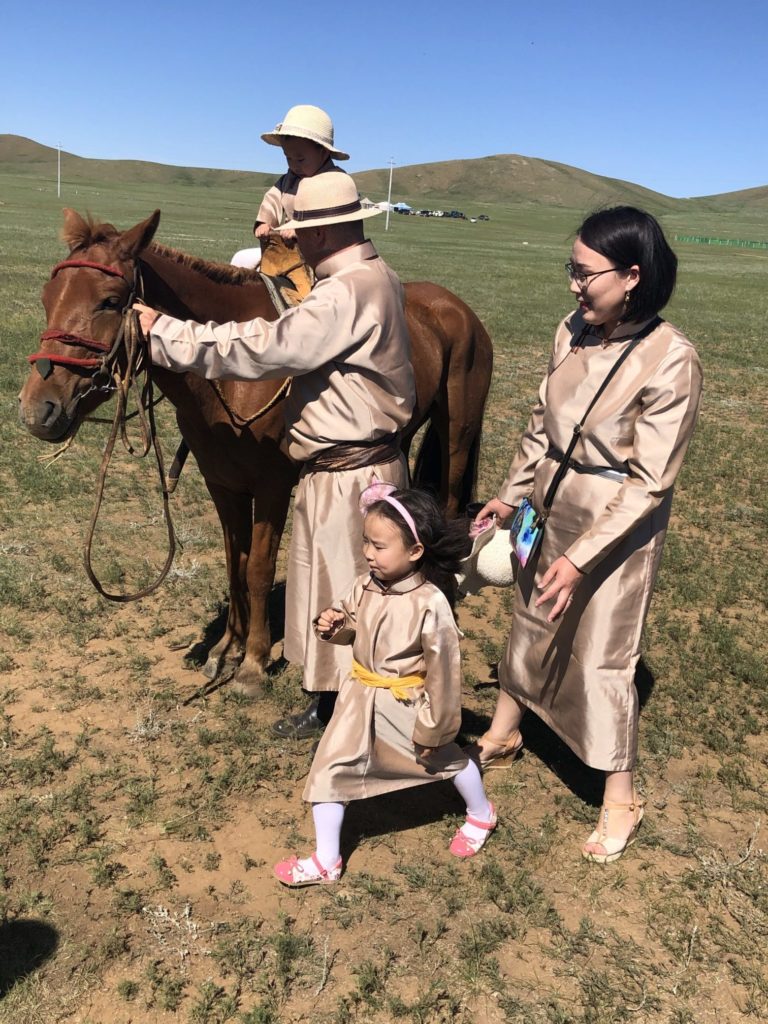 Mongolian Symphony Orchestra and Cultural ShowThis guy is a champion in the ‘ankle bones’ or “shagai” sport at the Naadam Games. The necktie-shaped tail on his hat has stripes that indicate his wins.Prayer Flags at a Buddhist MonasteryA Monglian family in their finest were posing with this horse at Nadaam Games